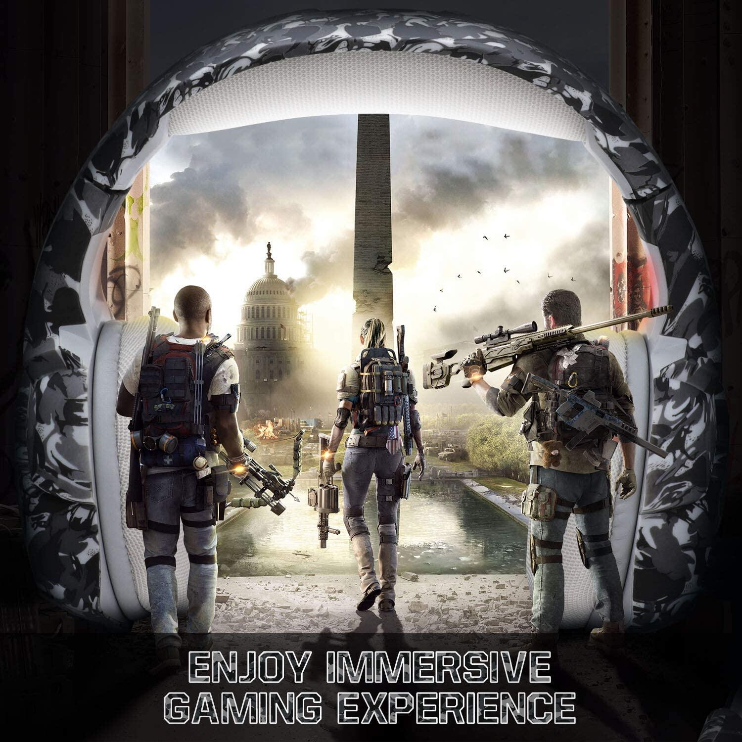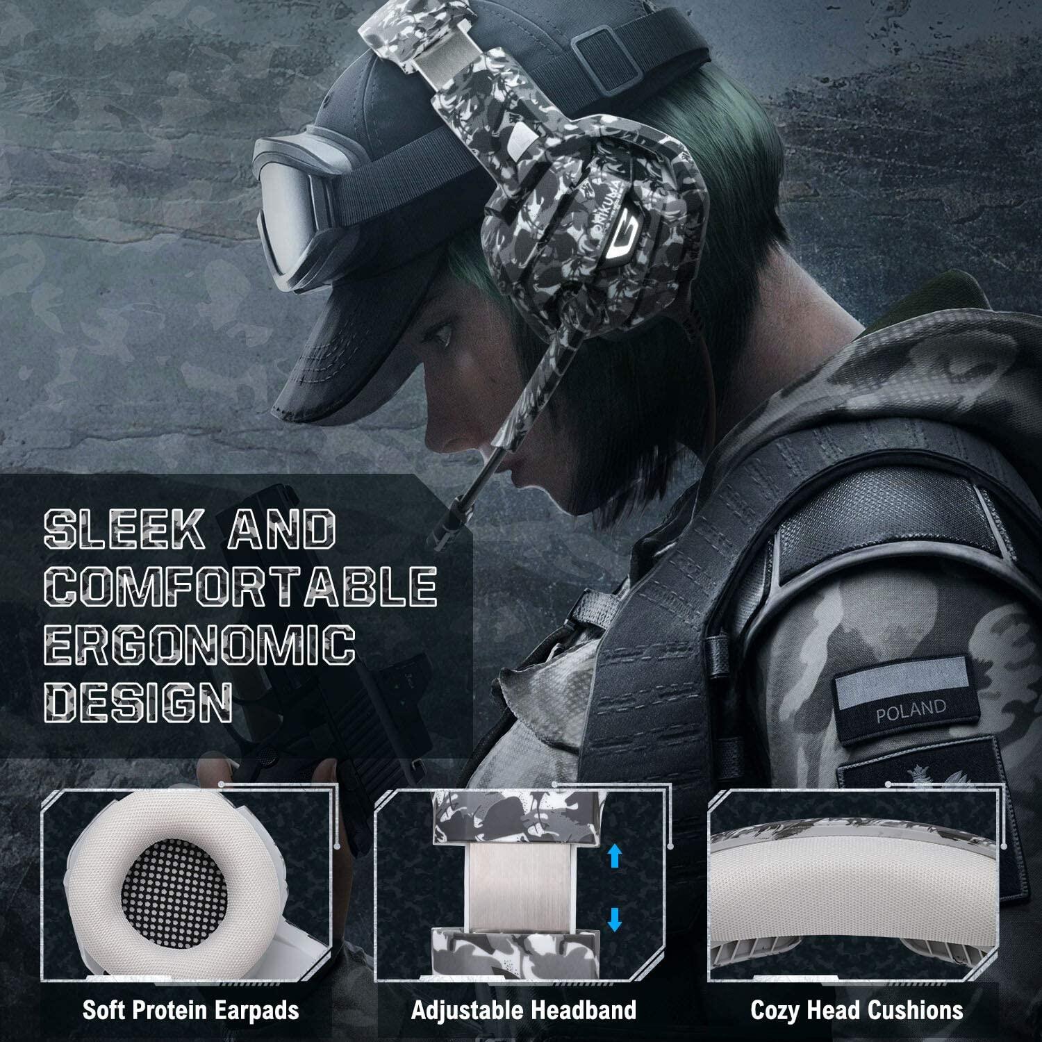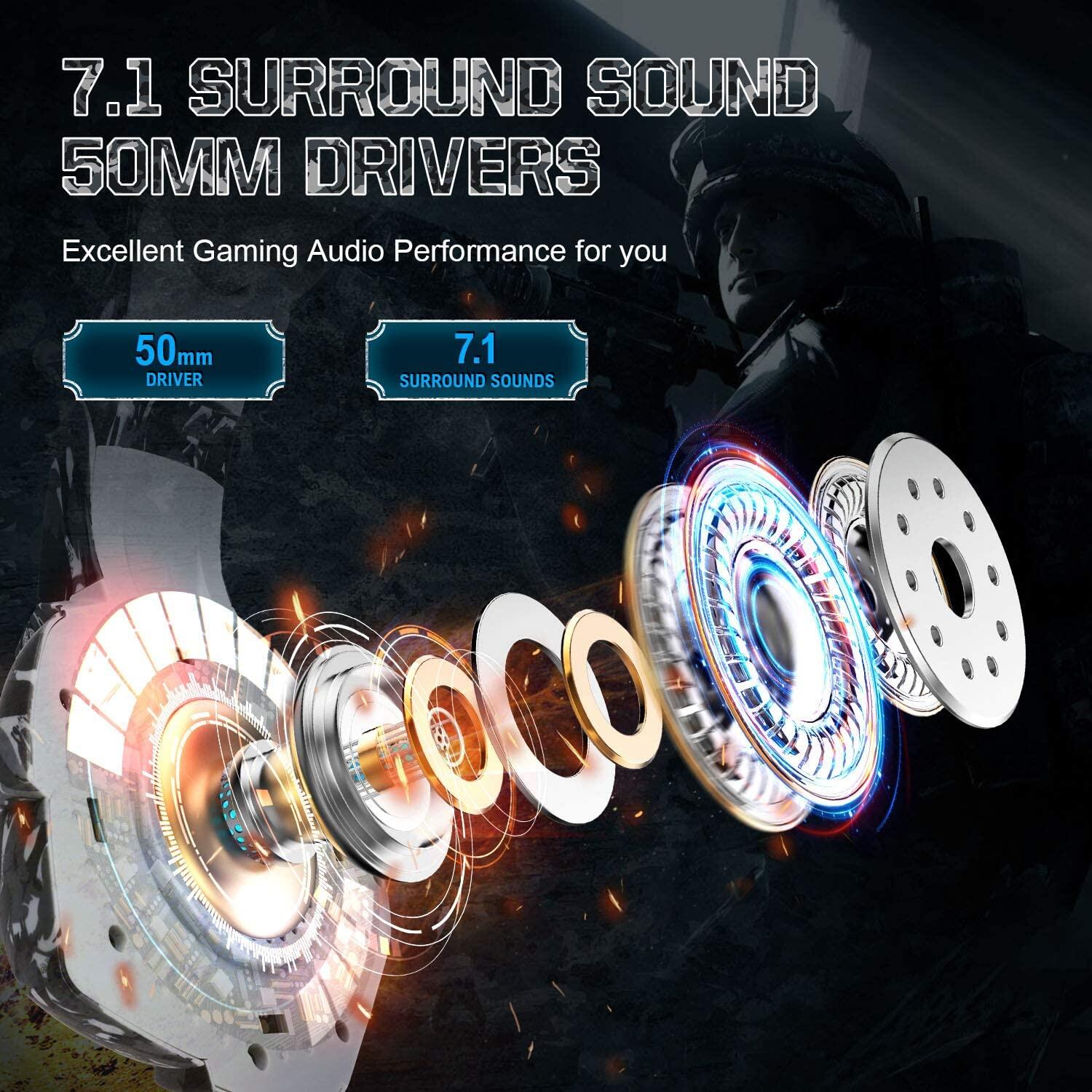 ONIKUMA K5 Camouflage Gaming Headset 7.1 Surround Sound PS4 Headset, 50MM Driver PC Headsets with Noise Canceling Mic & LED Light, Over Ear Earmuffs Gaming Headphones for Phone PUBG Laptop