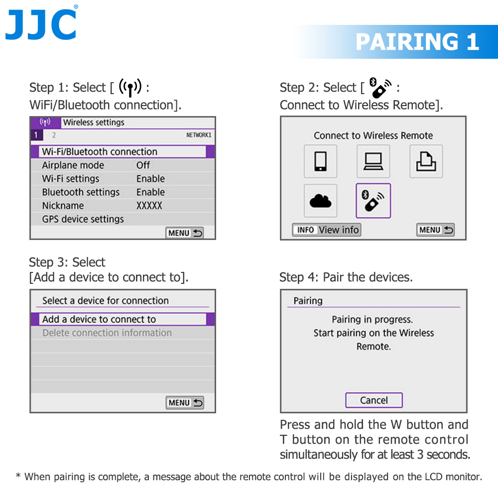 For proper use, pair the remote with your camera first, each EOS model is a bit different but this is the basic steps for a Canon M50: