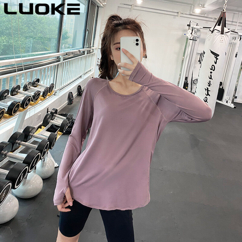 LUOKE Long Sleeve Sport Shirt for Women Elastic Quick-drying Loose Slim Yoga Tops Sports T-shirt Exercise Tops Women Sports Wear Women Top