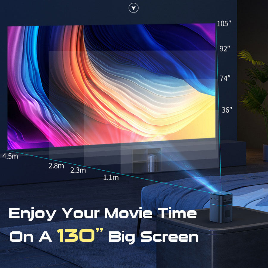 Watch Netflix, Youtube on a 130 inches big screen wherever you want.