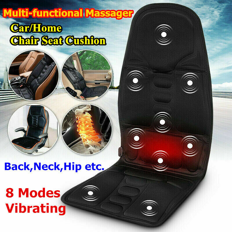 Electric Heating Vibrating Back Lumbar Neck Massager Chair Cushion Seat Pad For Car Home Office Shoulder Waist Mattress With Remote Controls Pain Relief Car Home Use