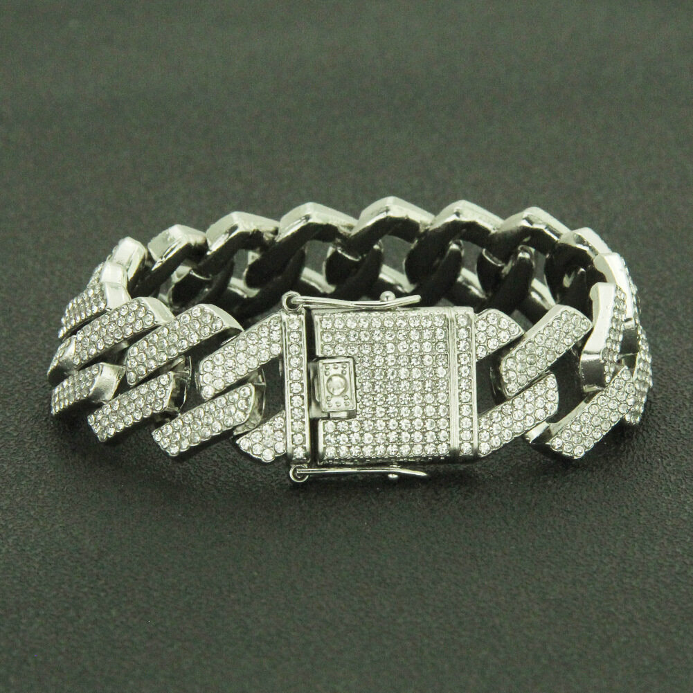 CLIBER Hip Hop 19MM 3 Row Heavy Cuban Prong Chain Bling Iced Out Box Buckle Copper Setting AAA+ Cubic Zirconia Chain For Men Jewelry