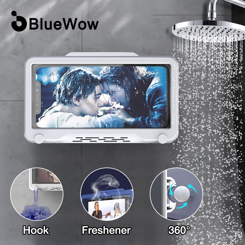 BlueWow WZ30 Wall Mount Shower Phone Holder Waterproof Bathroom case Mount Shelf, Bathroom Phone Shelf Shower Glass Mirror Shower Mount Storage Box Phone Holder