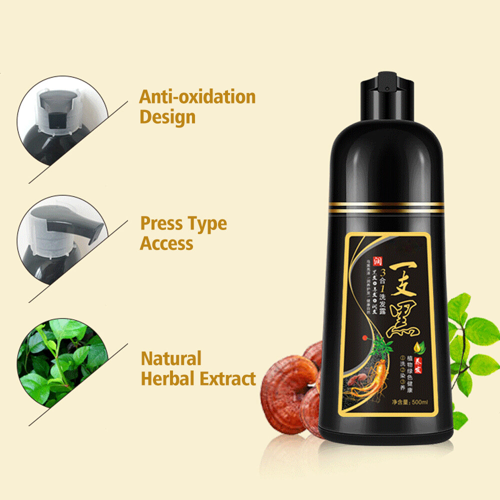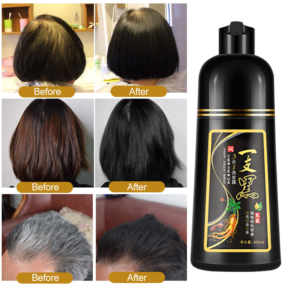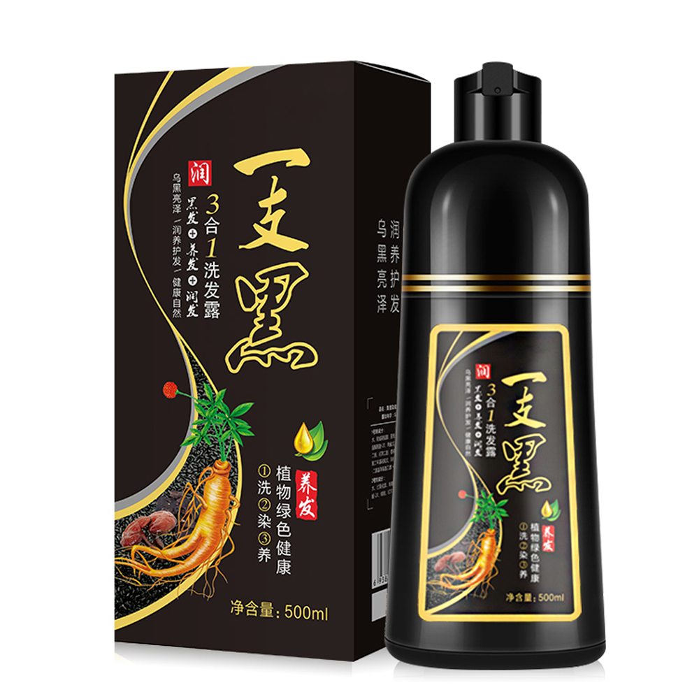 Dearbeauty 500ml Permanent Black Hair Shampoo Organic Natural Fast Hair Dye Plant Essence Black Hair Color Dye Shampoo For Women Men Cover Gray White Hair