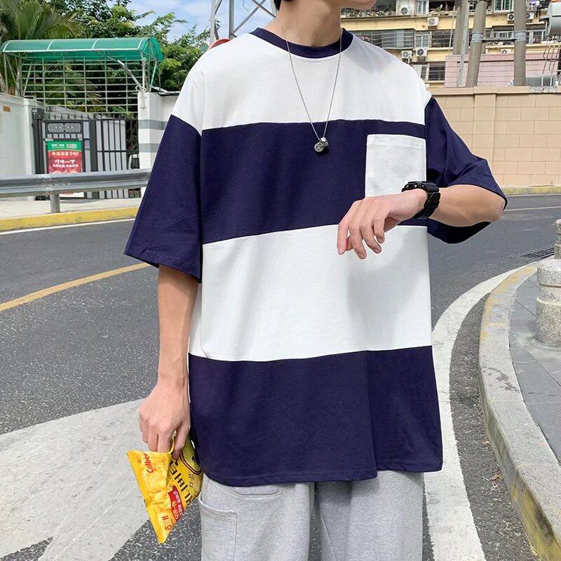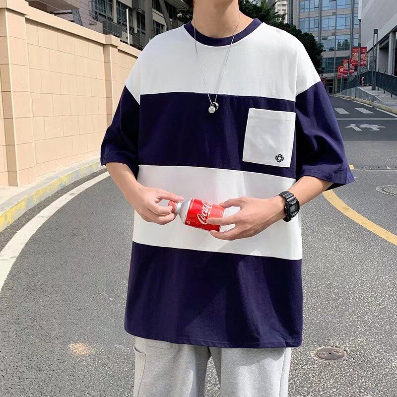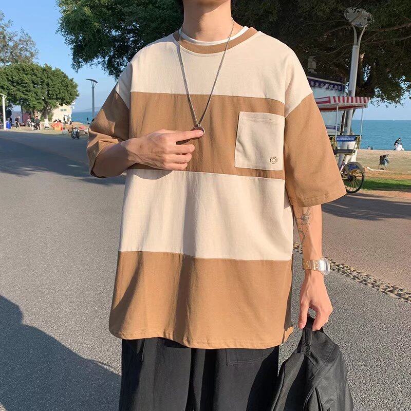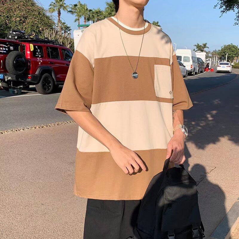 t shirt Men Korean Style Oversize Short Sleeve Fashion Tops Casual Contrast Color Block Print t-shirt