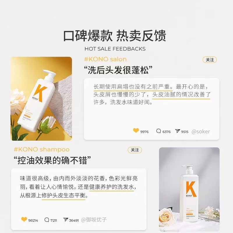 KONO控油蓬松KONO shampoo oil control light fluffy anti-dandruff itching genuine men and women fragrance shampoo