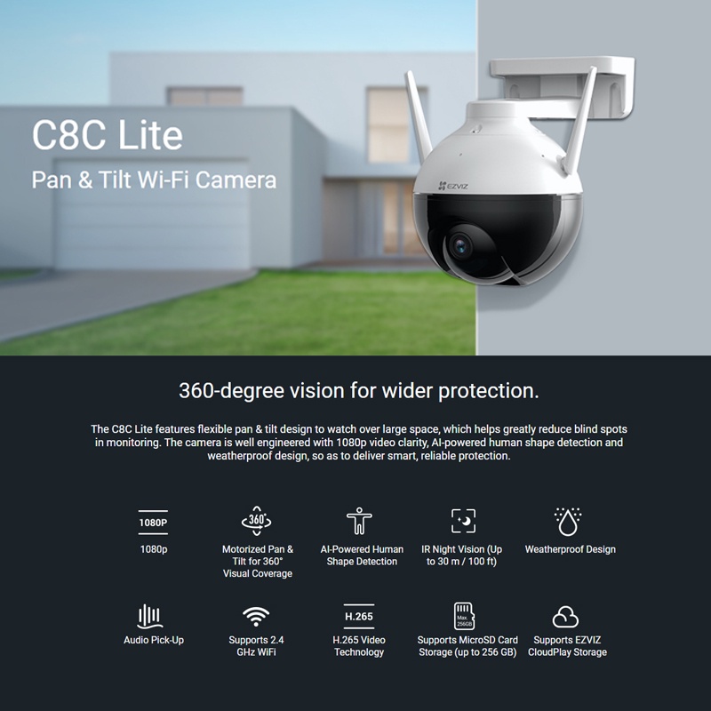 【SG warranty】EZVIZ C8C Lite 1080P 2MP 4mm Pan & Tilt Wi-Fi Camera Outdoor Wireless CCTV Camera 32/64/128/256GB