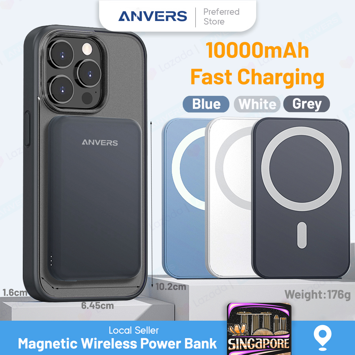 Anvers Magsafe Power Bank 10000mAh Wireless Magnetic Battery Pack Fast Charging Portable Charger for iPhone 16/15/14/13/12