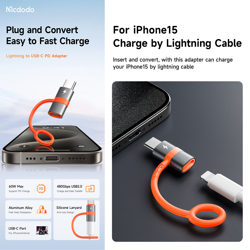 Mcdodo OT-553 Lightning to USB-C PD Adapter Support:60W [Order Model: MCD-OT5530]