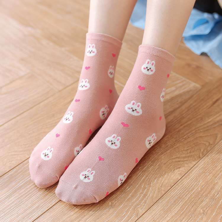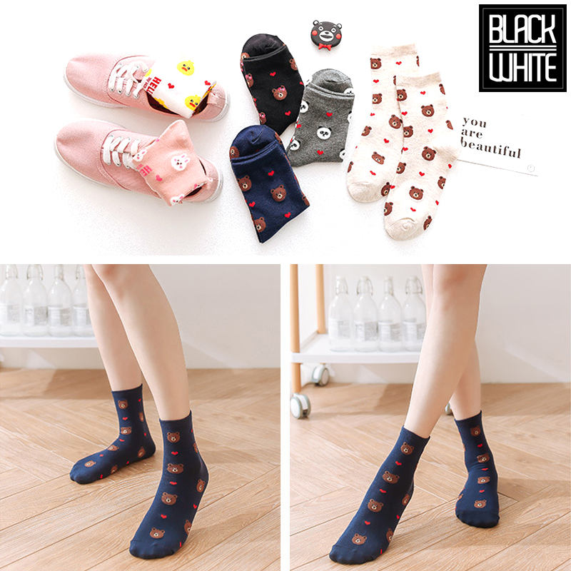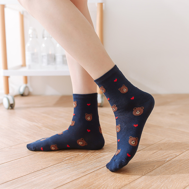 (10 pairs, 10 colors) Brown bear socks For Women Men Kids Children Cute Cartoon Short Socks