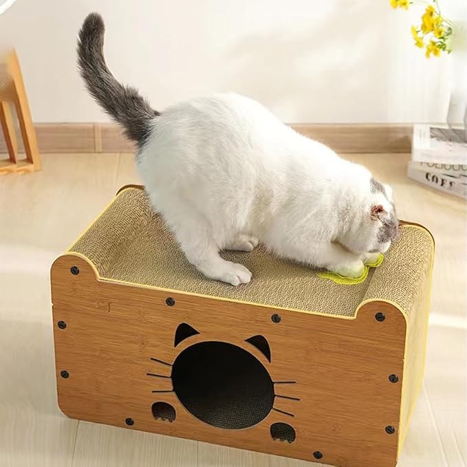 • 【Sturdy Cat House Scratcher】This cat scratcher house is designed with sturdiness in mind, capable of supporting the weight of an adult cat.Our cat scratcher is designed with a stable base and is made from non-toxic materials, providing a safe environment for your cat